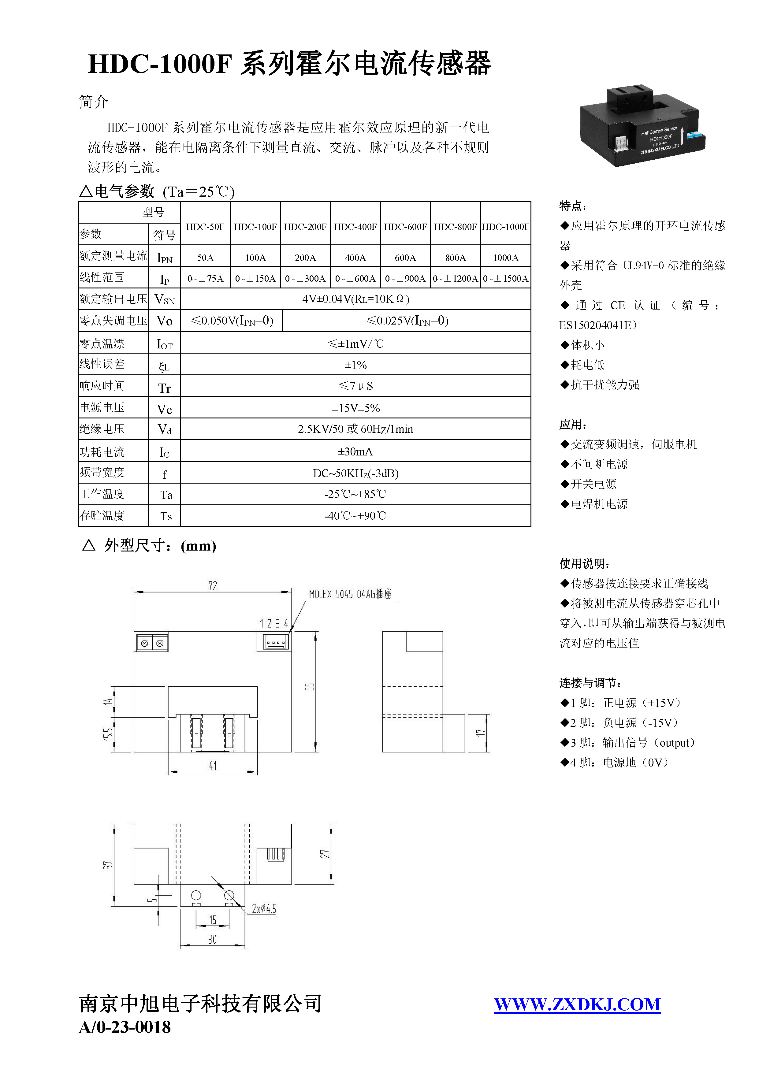 HDC-1000F系列霍爾電流傳感器是應(yīng)用霍爾效應(yīng)原理的新一代電流傳感器,能在電隔離條件下測(cè)量直流、交流、脈沖以及各種不規(guī)則波形的電流。
